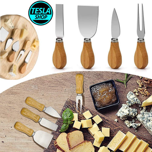 Luksuzni zet noževa za sir od nerđajućeg čelika sa drvenom ručkom