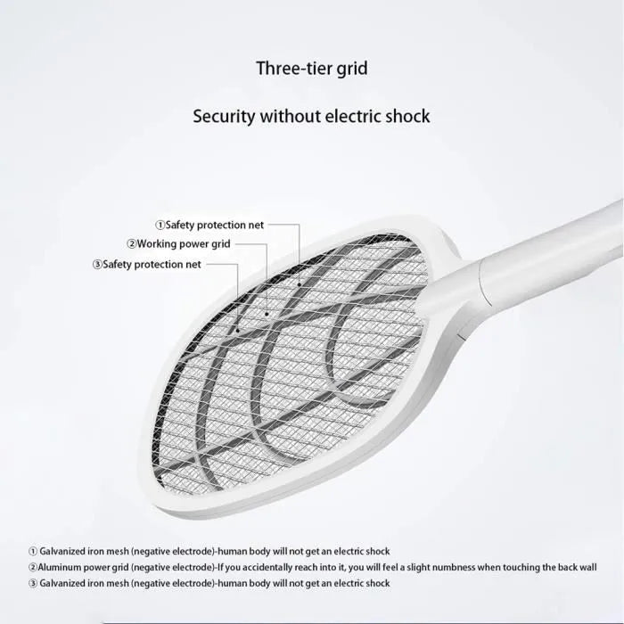 Reket ima 3-slojnu mrežu i dvostruki prekidač za osiguranje, omogućavajući Vam da bezbedno koristite uređaj bez straha od deformacija ili slučajnog kontakta. – Jednostavno i Efikasno!