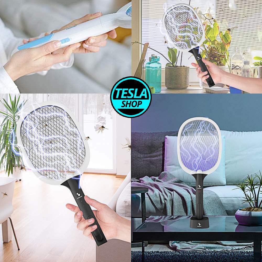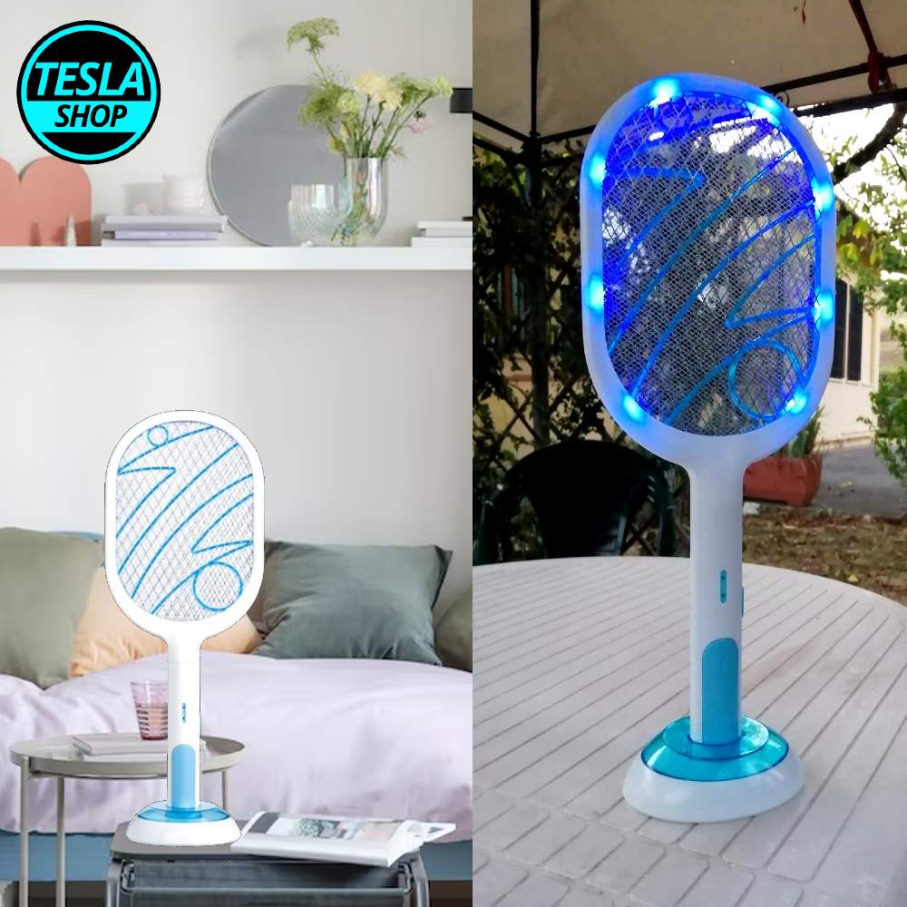 Uništite komarce zamahom reketa ili fiksirajte reket u poziciju lampe kako bi automatski privukli i uništili insekte. – Ručno ili Kao Lampa Protiv Komaraca!