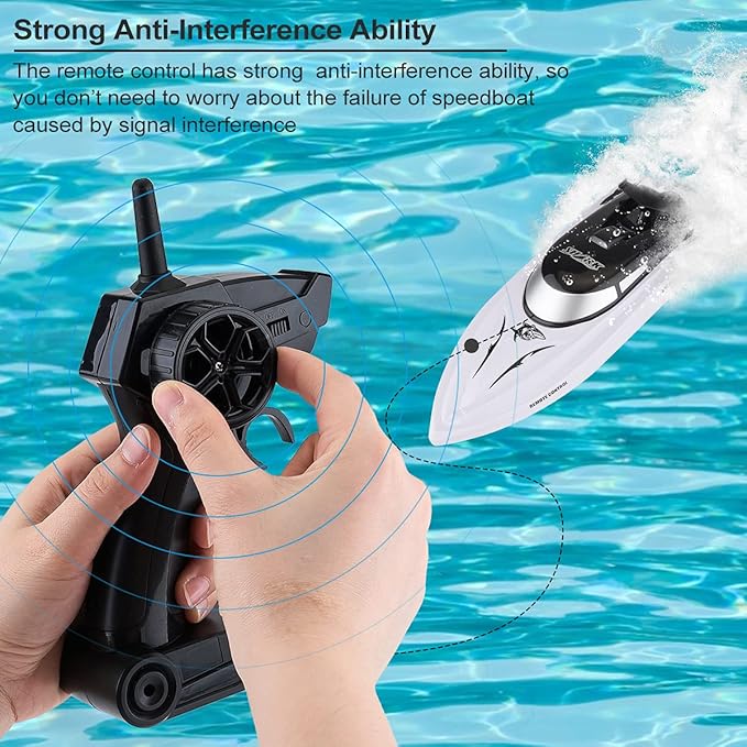 Brzina je uzbuđujući aspekt našeg RC čamca. Sa snažnim motorima, postiže brzinu do 10 km/h.