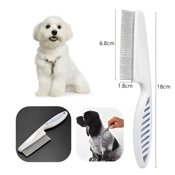 Naš češalj za kućne ljubimce omogućava Vam da lako i nežno održavate krzno vašeg ljubimca, čineći ga čistim i urednim. Idealno rešenje za uklanjanje buva, vaški i zapetljane dlake, naš češalj čini svaki trenutak češljanja prijatnim za vašeg ljubimca.