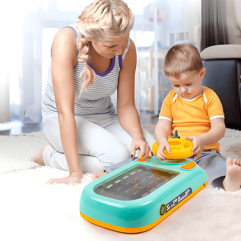 Naša dečija trkačka igračka na volanu je savršena igračka koja dodaje uzbuđenje i avanturu svakoj dečijoj igri. Ova igračka je specijalno dizajnirana da pruži deci realistično iskustvo vožnje dok razvijaju njihove motoričke veštine i kreativnost.