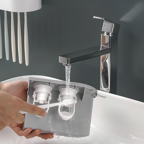 Sa četiri uklonjive čaše koje dolaze uz naš držač, više ne morate da držite obične čaše u kupatilu, a niti da pijete tečnost za ispiranje usta direktno iz boce.