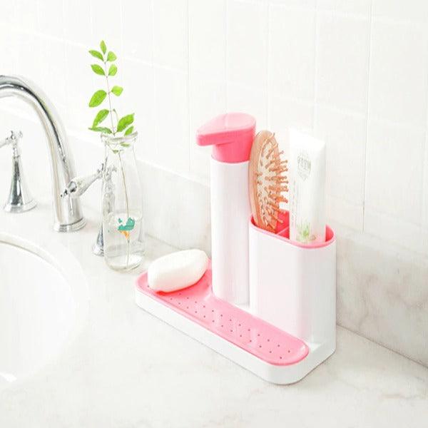 Organizujte sunđere, šampone, četkice za zube i druge predmete, i držite tečni sapun u dispanzeru ovog stalka kako se ne bi rasipao svuda!