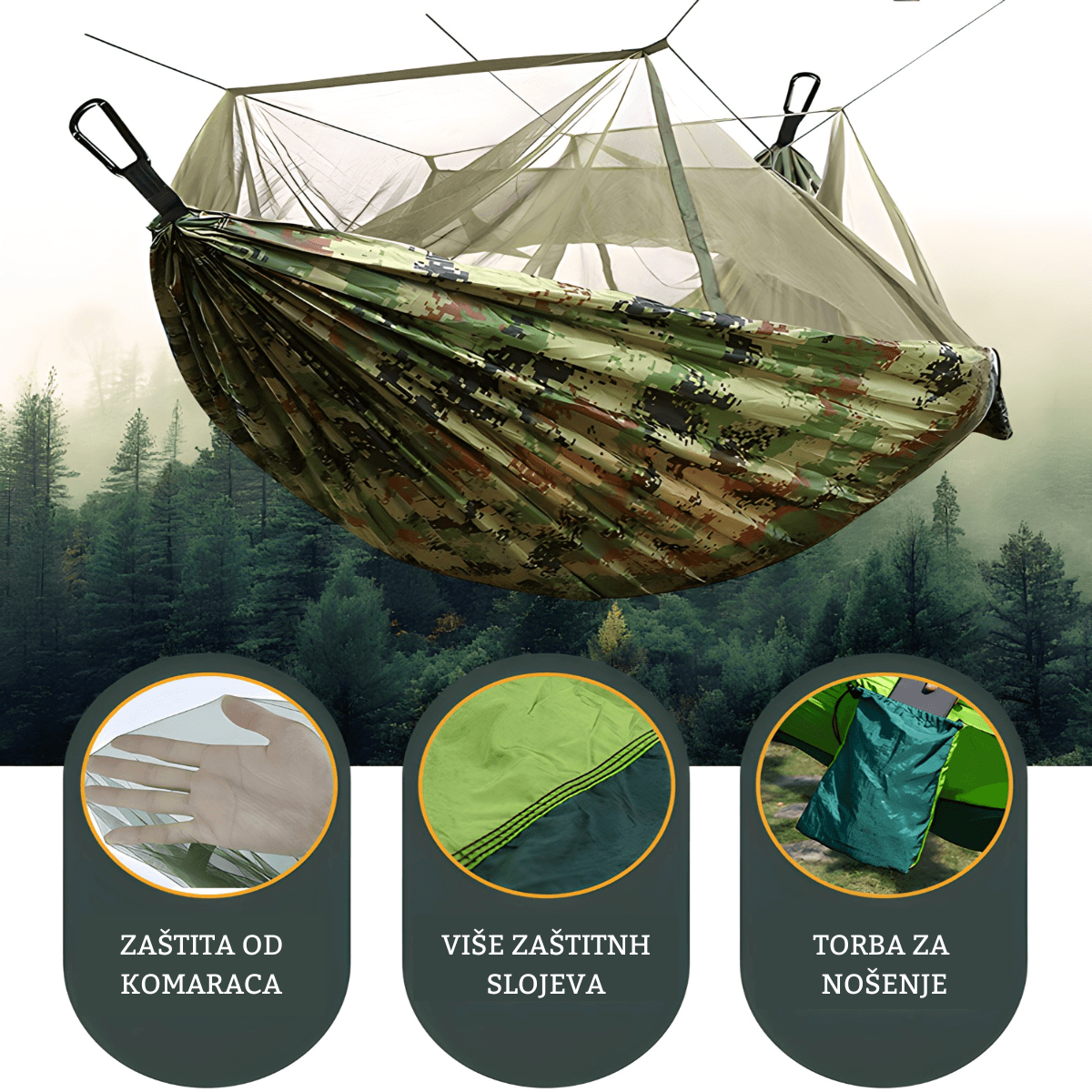 Uživajte u udobnosti i zaštiti od komaraca tokom kampovanja sa našom revolucionarnom ležaljkom sa zaštitnom mrežom! 🏕️🌿