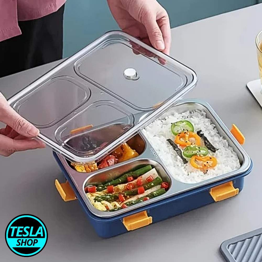 Kutija je neustrašiva u svojoj spremnosti da se suoči sa svim izazovima života. Opremljena sa tri odvojena odeljka, omogućava vam da pakujete širok spektar jela – od mirisnih karija do osvežavajućih salata.