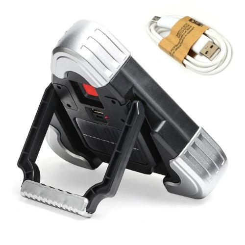 Trougao svoja led svetla puni putem solarne energije, a moguće je priključiti ga i na USB punjač.