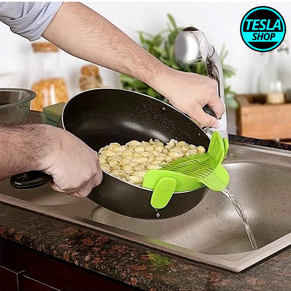 Inovativni dizajn ovog silikonskog sita čini prenošenje hrane suvišnim. Bočne kopče bezbedno pristaju na okrugle šerpe, tiganje i činije svih veličina (uključujući činije sa ivicom) i čine odvojeno sito za testeninu suvišnim, što štedi dragoceni prostor u ormanu i smanjuje nered u kuhinji. Naručite svoje danas!