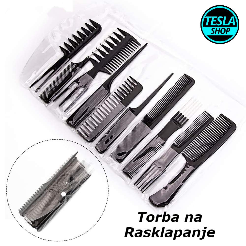 Sa ovim profesionalnim češljem od 10 delova, možete oblikovati kosu svog klijenta ili sopstvenu kosu u bilo koji željeni model. Set češlja od 10 komada sadrži razne češljeve koji su pogodni za svaki tip kose. Pogodno i za profesionalnu i za kućnu upotrebu.