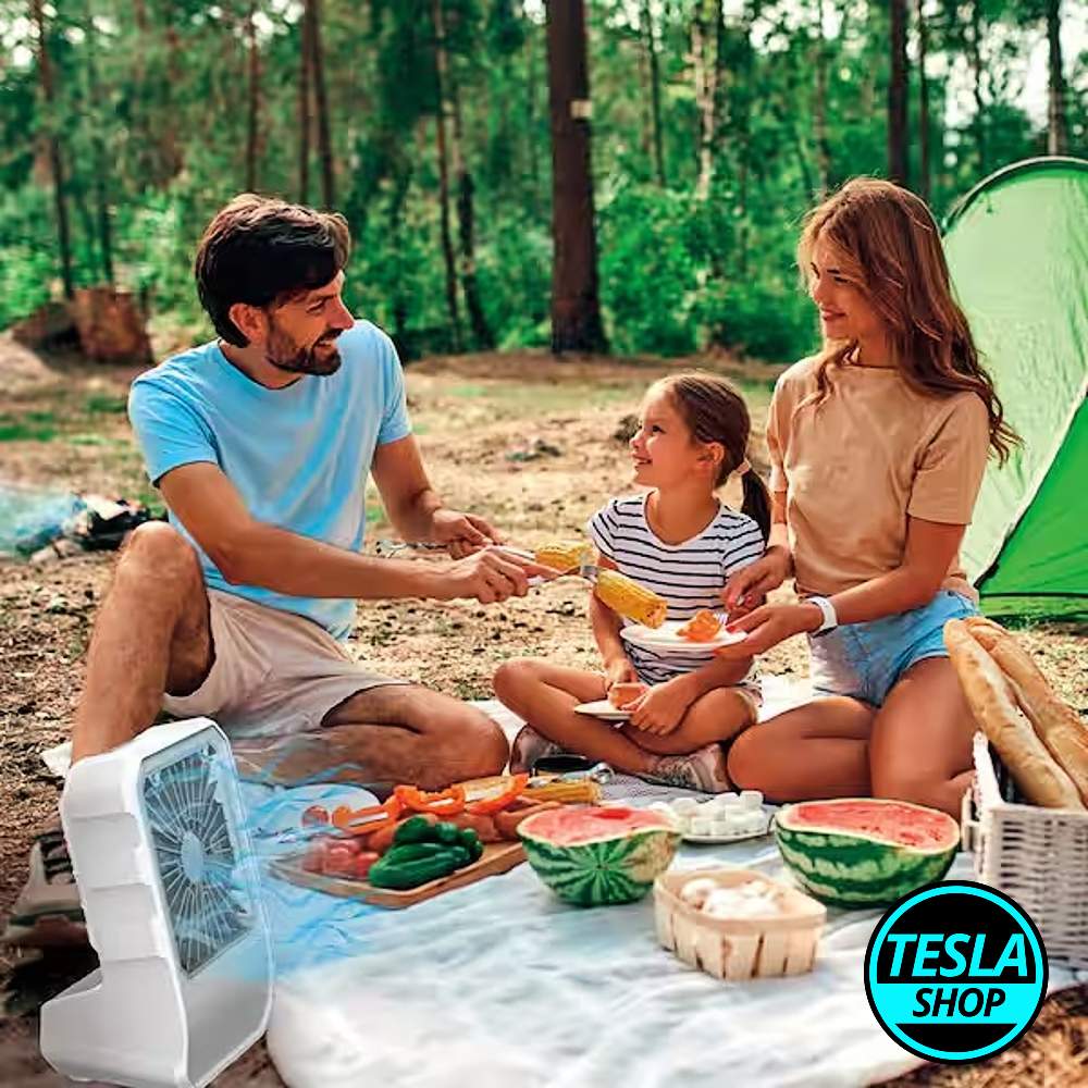 Ovaj prenosivi hladnjak je lagan za nošenje zahvaljujući ugrađenoj ručki, dok je njegova upotreba veoma jednostavna – jednostavno napunite rezervoar za vodu, usmerite hladnjak u željenom pravcu i uključite ga. Idealan je za kampovanje, plažu, terasu, ili pored bazena.