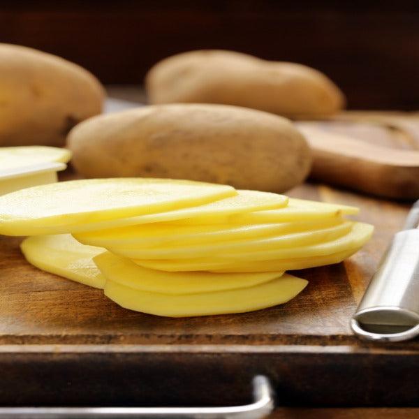 Podesite debljinu sečiva, stavite voće ili povrće u držač i iseckajte na željene parčiće očas posla.