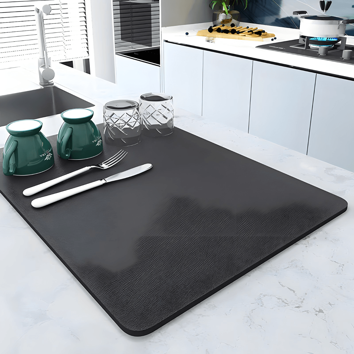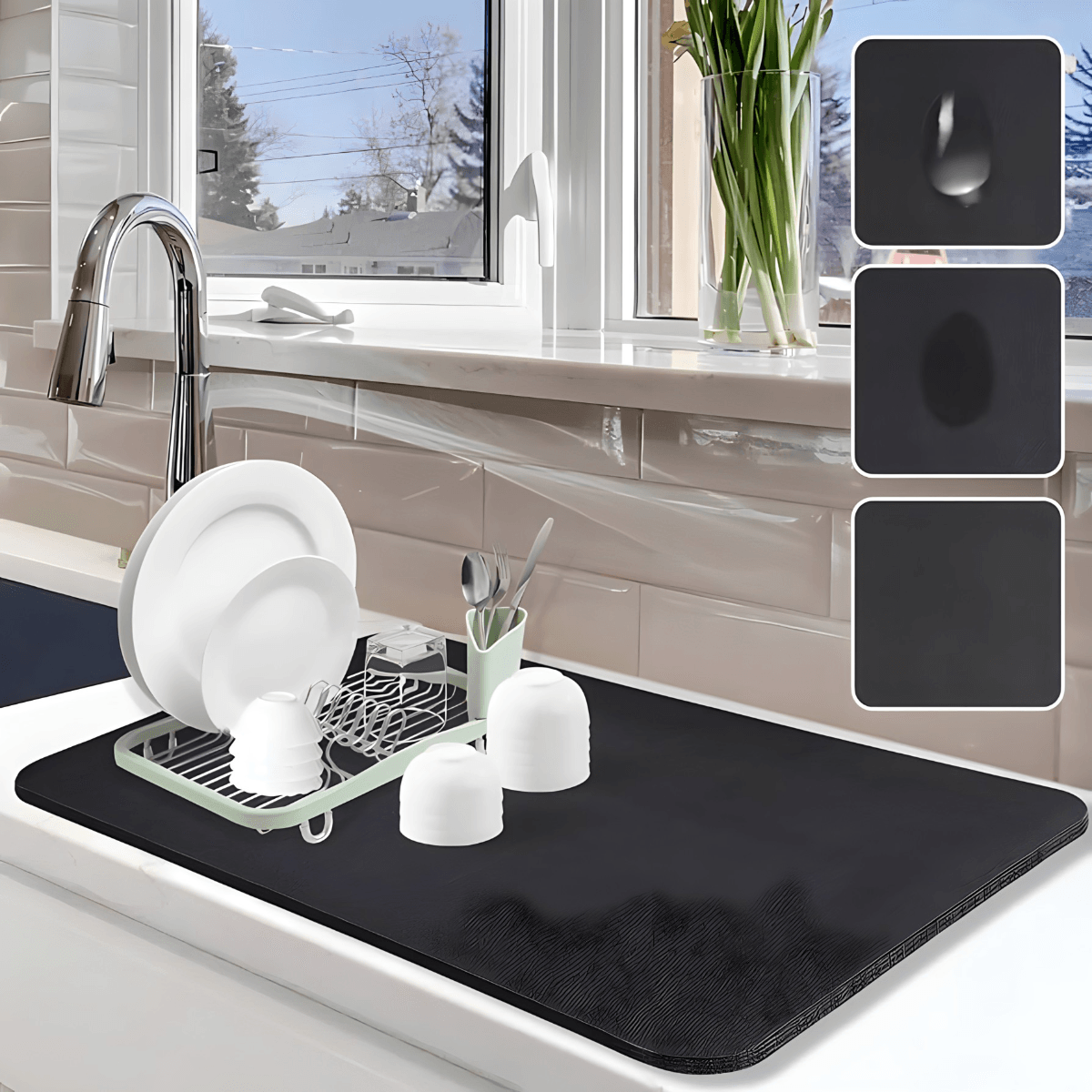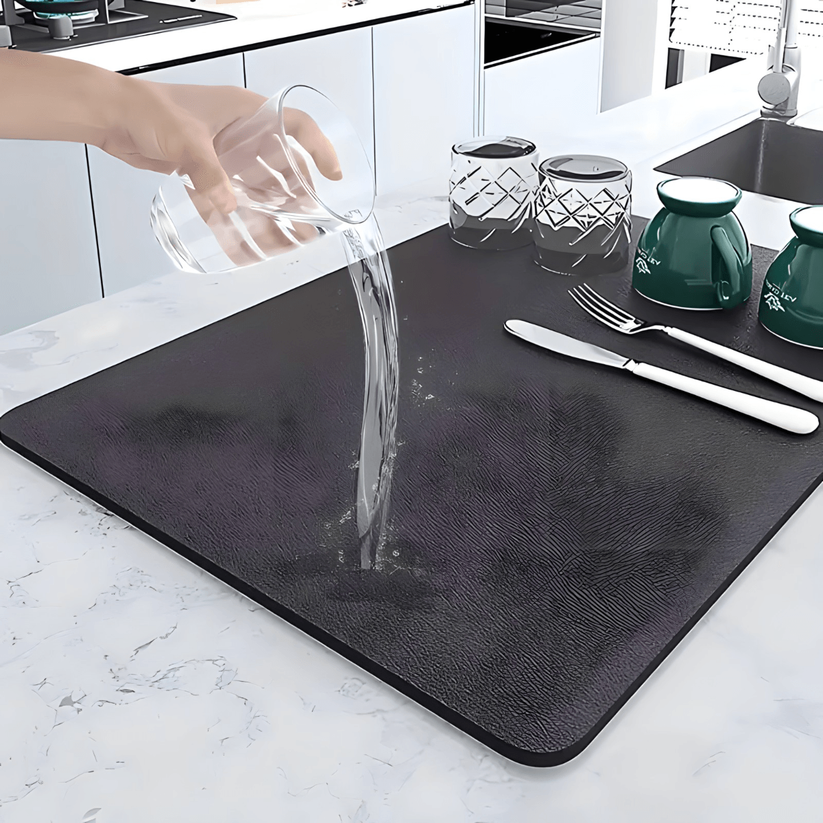 Ne samo da je praktična, već naša podloga za sušenje sudova donosi i moderan izgled Vašoj kuhinji. Sa svojim elegantnim crnim dizajnom, ova podloga je savršena kombinacija stila i funkcionalnosti.