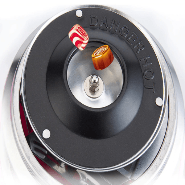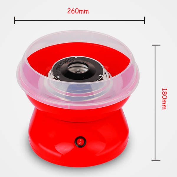 Dovoljno je da sipate šećer u centralni deo koji se rotira i vuna će krenuti da se formira i izlazi, na Vama je da je drvenim štapićem sakupite i slatko pojedete!