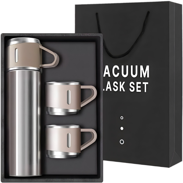 Elegancija u dizajnu: Ovaj vakumski termos set ne samo da čuva Vaše piće, već i dodaje dašak stila svakom trenutku. Sjajni metalik finiš i moderna forma čine ga savršenim dodatkom za Vašu kancelariju, kuću ili putovanje. Budite sigurni da ćete privući poglede i izazvati divljenje.