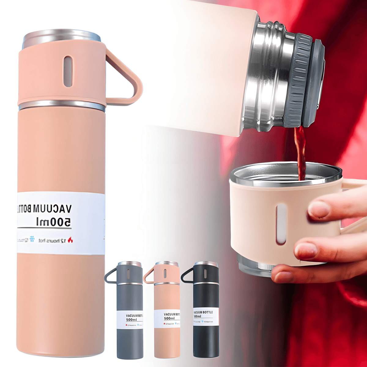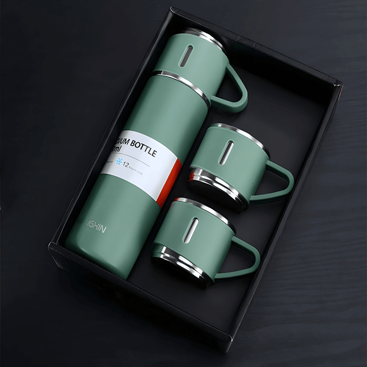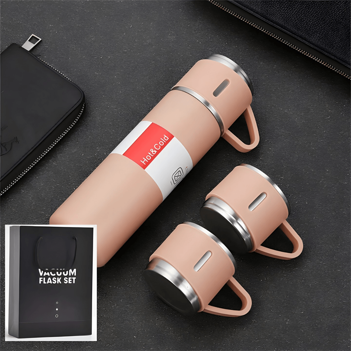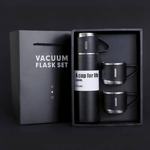 Zadržite toplinu i ukus: Ovaj vakumski termos set boca i šolja je Vaša najbolja prijateljica za održavanje Vaše omiljene kafe, čaja ili tople čokolade na savršenoj temperaturi. Zahvaljujući njenom dvostrukom zidu od nerđajućeg čelika i vakumskoj izolaciji, Vaša pića će ostati vruća ili hladna mnogo duže, garantujući da svaki gutljaj bude jednako ukusan kao i prvi.