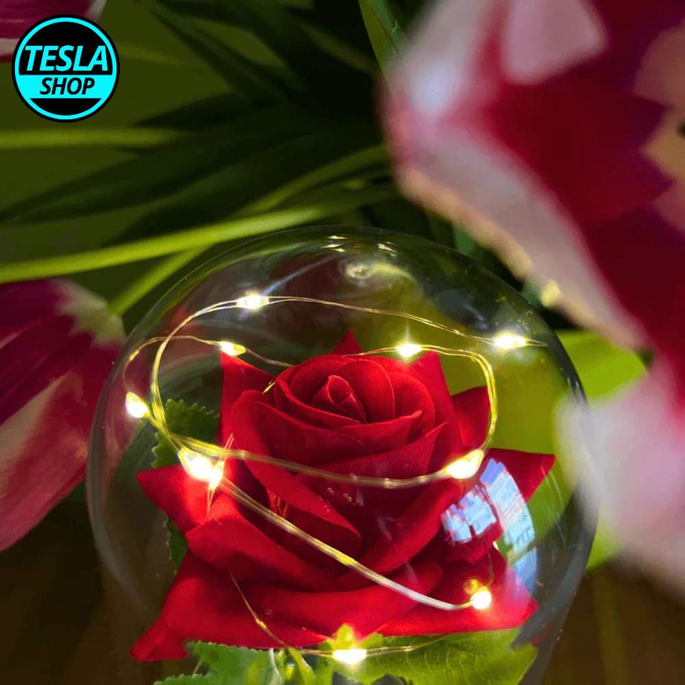 Ruža u staklenoj kupoli je umotana oko LED diode, napaja se pomoću 3 AAA snage (nisu uključene), LED trake, jarko šareno osvetljenje i toplo svetlo. LED ruža se može koristiti danju i noću za dekoraciju kućne sobe ili kreiranje romantične atmosfere. Osim toga, veoma je pogodna za kućnu dekoraciju stola, uredski aranžman, dekoraciju venčanja.