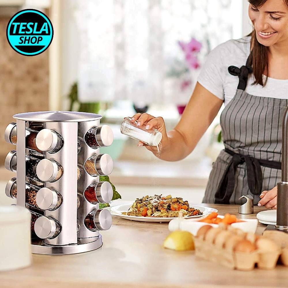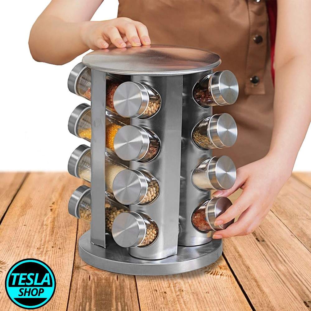 Veliki rotirajući stalak za začine sa 16-12 staklenih tegli