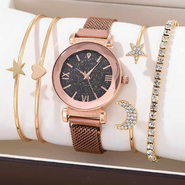 Izrađen u prelepoj rose gold boji, ovaj sat dodaje dašak elegancije svakom outfitu. Lako se kombinuje sa različitim bojama i stilovima, što ga čini must-have dodatkom u Vašoj kolekciji. Bez obzira na priliku, će Starry time sat Vašem izgledu dodati notu elegancije.