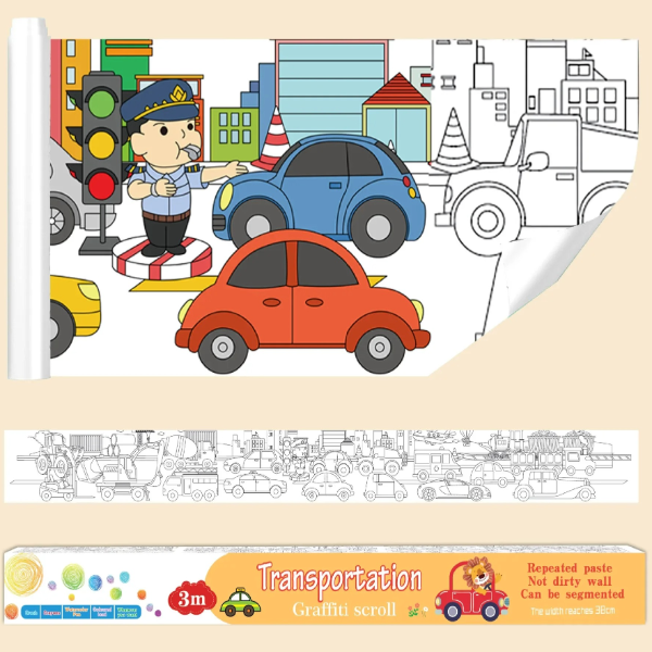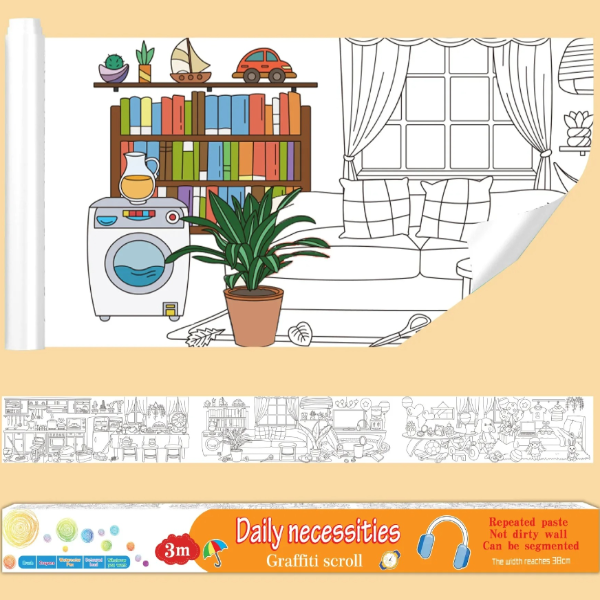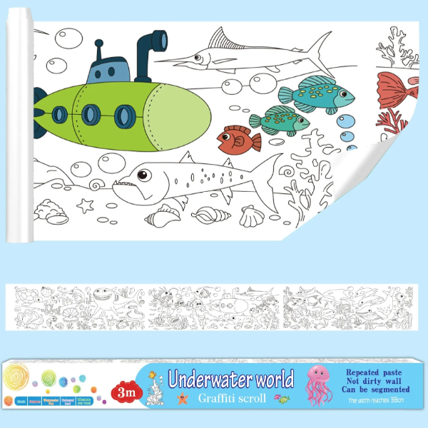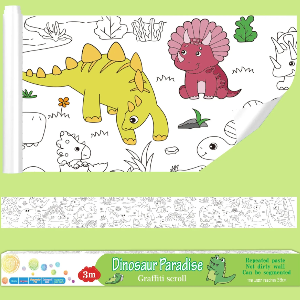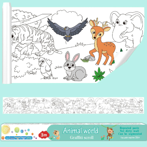 Sa mogućnošću da se iseče na željenu dužinu, naša bojanka se savršeno uklapa u svaki prostor, od dečije sobe do igraonice. Zalepite je na bilo koju ravnu površinu i gledajte kako umetnička dela vaših mališana oživljavaju.