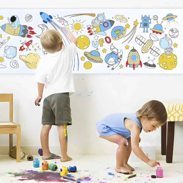 Dizajnirana da bude prilagođena deci različitih uzrasta, naša zidna bojanka je idealna za porodično vreme, podstičući zajedništvo i saradnju.
